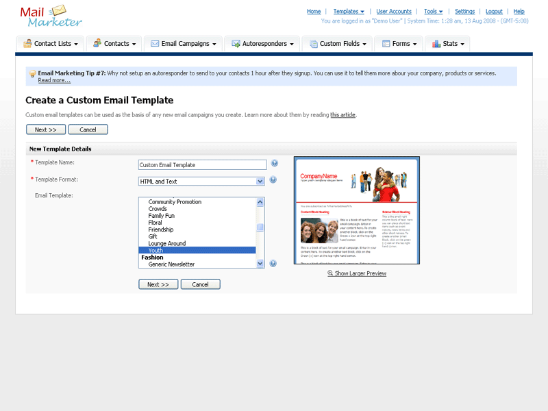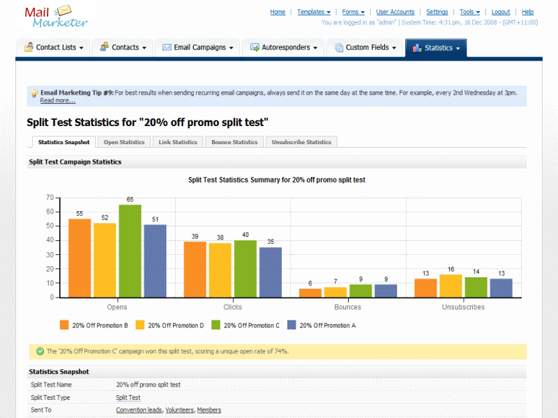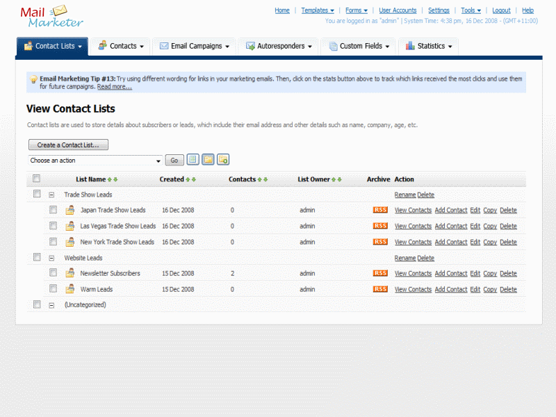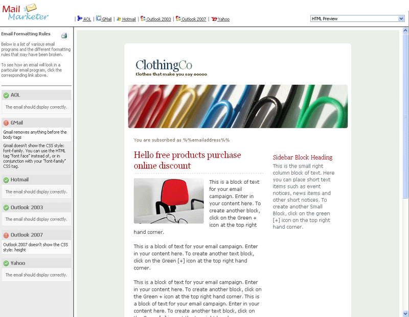 A collection of Mail Marketer screen shots are displayed below. Sign up for a 30 Days Free Trial and start your email marketing campaign today!